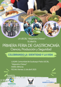 La Unidad Educativa Comunitaria Intercultural Bilingüe “Alejandro Chávez” invita a toda la ciudadanía de San José de Quichinche a participar en este gran evento, donde celebraremos nuestra identidad y cultura a través de la gastronomía, la ciencia, la producción y la seguridad.